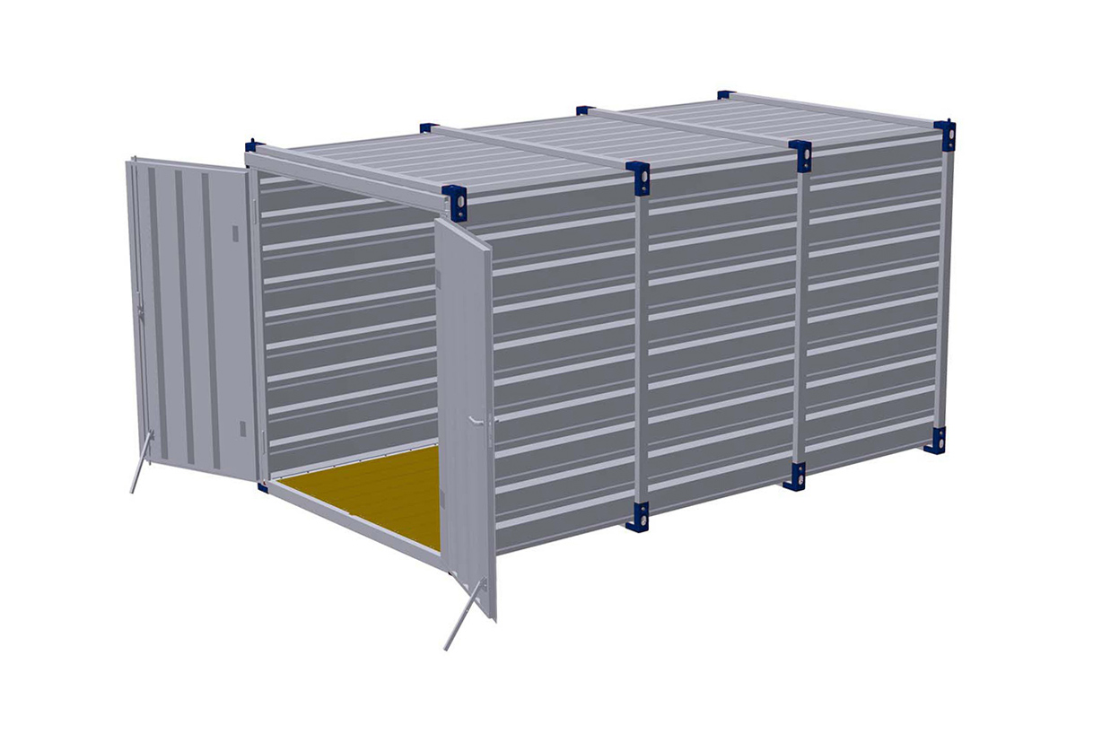 Deze demontabele opslagcontainer wordt compleet geleverd met vloer, wanden, dak en deurbeslag.